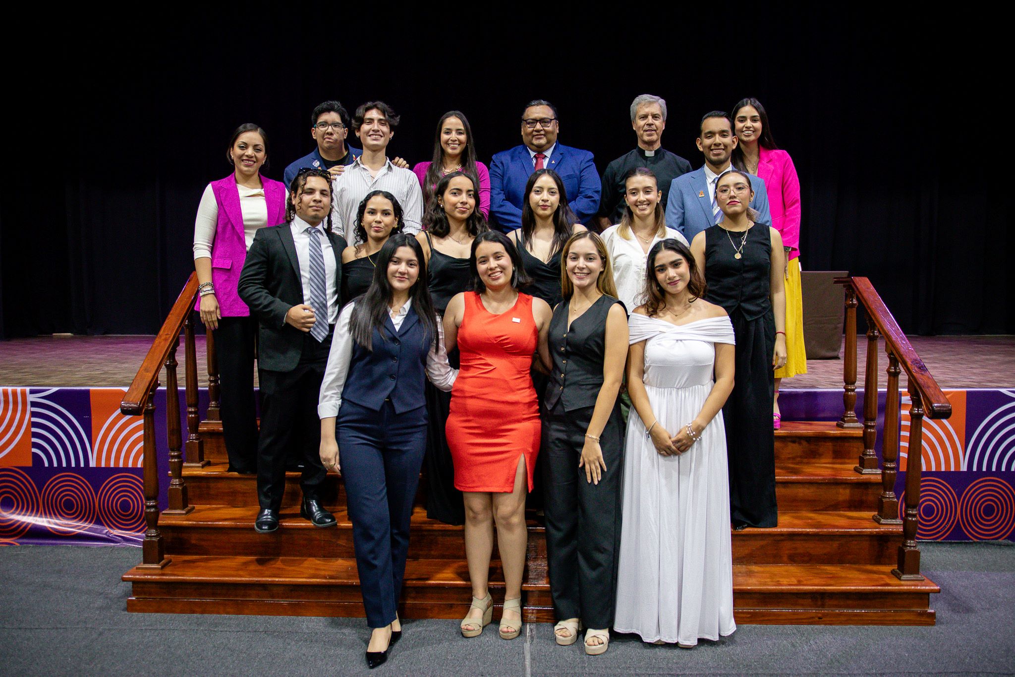 Atestiguaron este acto en el presídium, nuestra Rectora, la Lic. Gloria Laura Septién, el Mtro. Basilio Kot, Vicerrector Académico, el Mtro. Eduardo Meléndez, Vicerrector de Desarrollo y Educación Media Superior, el Mtro. Germán Wiedmer, Vicerrector de Formación Integral, la Lic. Ana Carolina López, Responsable de Relaciones Estudiantiles y las presidentas entrante y saliente de la FESAL.